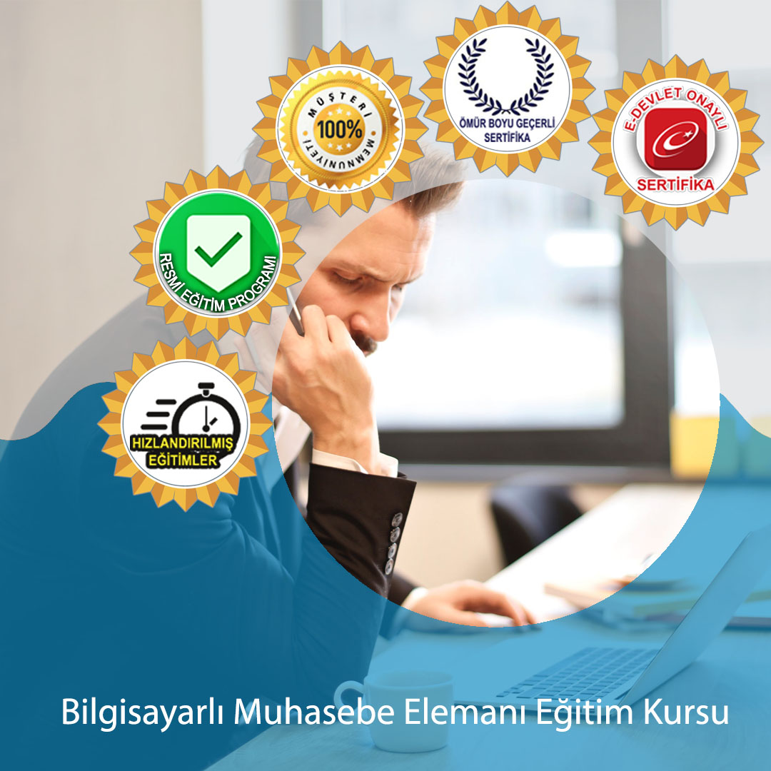 Bilgisayarlı Muhasebe Elemanı mesleğine yönelik olarak verilen kurs sonundaki kurs bitirme sınavı uzaktan eğitim sistemimiz tarafından yapılır. Sertifika sınavına katılan ve kursiyerler 100 puan üzerinden 45 puan ve üzeri puanlar aldığında başarılı olarak sayılır ve Bilgisayarlı Muhasebe Elemanı kurs bitirme belgesi (Sertifikası)” almaya hak kazanır. Kurum tarafından hazırlanan sertifikalar Üniversite tarafından onaylandıktan sonra teslim edilir. Sertifikanın teslim tarihi 7 işgününü aşmamaktadır.