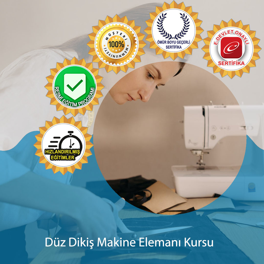 Düz Dikiş Makine Elemanı; Düz sanayi dikiş makinesi ile uygun dikiş tekniklerini kullanarak giysi üretimi yapma bilgi ve becerisine sahip nitelikli kişidir.