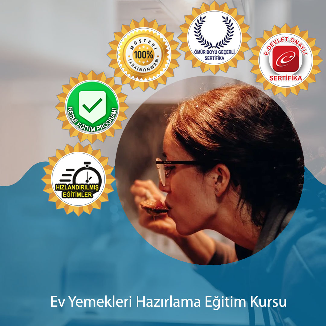 Ev Yemekleri Hazırlama mesleğine yönelik olarak verilen kurs sonundaki kurs bitirme sınavı uzaktan eğitim sistemimiz tarafından yapılır. Sertifika sınavına katılan ve kursiyerler 100 puan üzerinden 45 puan ve üzeri puanlar aldığında başarılı olarak sayılır ve Ev Yemekleri Hazırlama kurs bitirme belgesi (Sertifikası)” almaya hak kazanır. Kurum tarafından hazırlanan sertifikalar Üniversite tarafından onaylandıktan sonra teslim edilir. Sertifikanın teslim tarihi 7 işgününü aşmamaktadır.