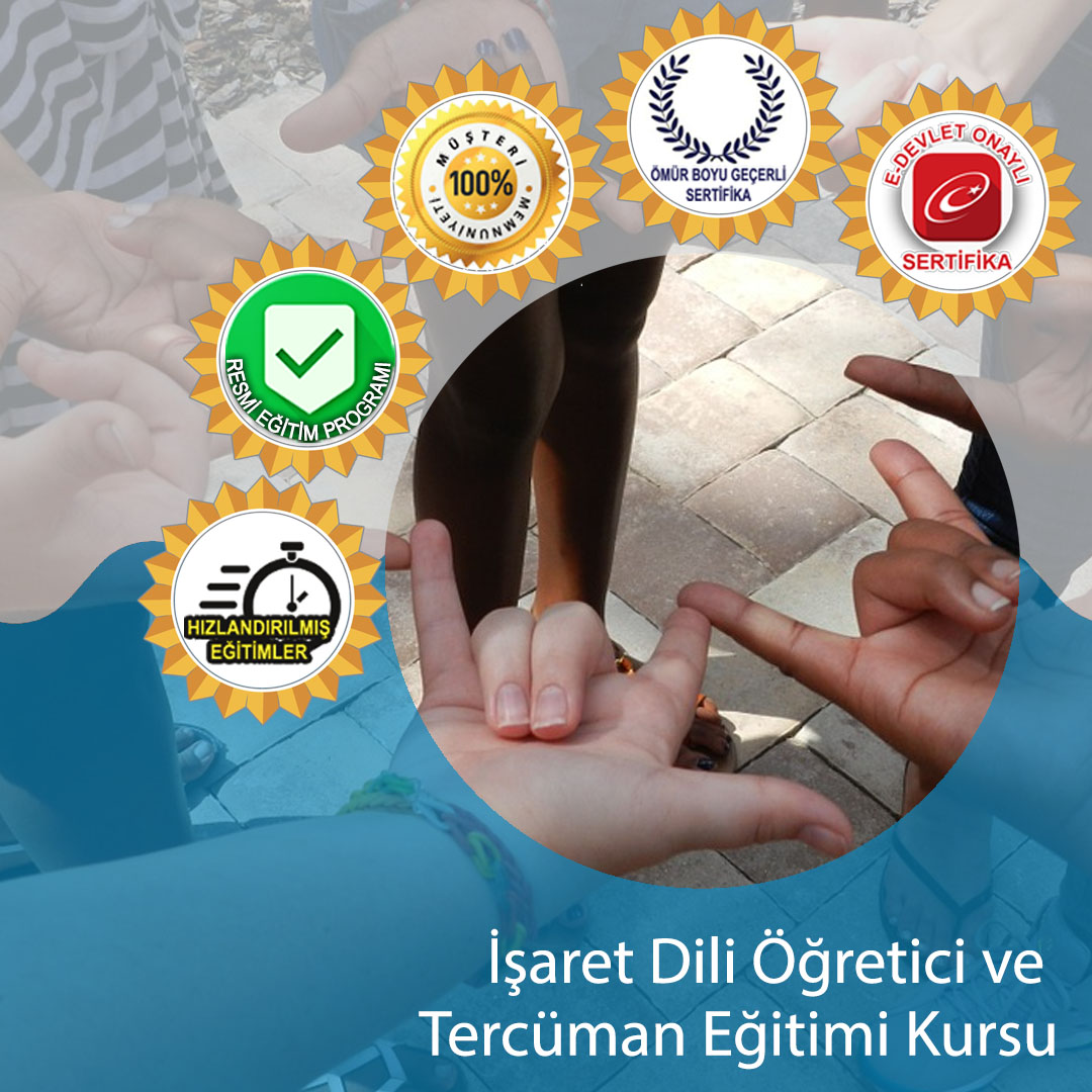 İşaret Dili Öğretici ve Tercüman Eğitimi Programı bireyleri bu alanda yeterli hale getirmeyi amaçlamaktadır. İşaret Dili Öğretici ve Tercüman eğitimi kursumuzun içeriği, İşaret Dili Öğretici ve Tercüman eğitimi kursumuzun süresi ve kursumuz sonunda alacağınız Üniversite ve E devlet Onaylı Sertifikanın geçerliliği hakkında temel bilgiyi buradan edinebilirsiniz.