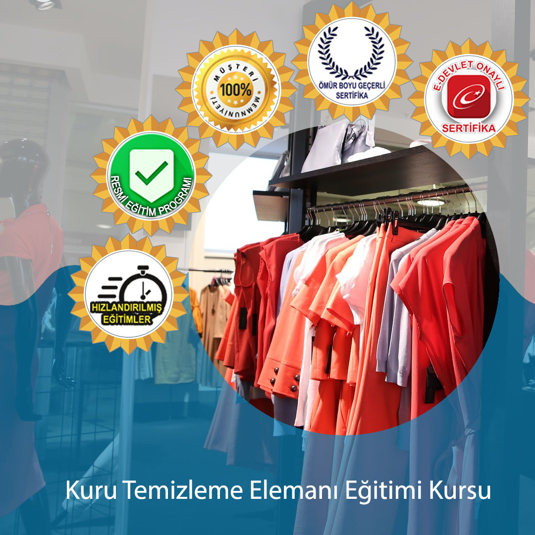 Kuru Temizleme Elemanı Eğitimi Programı bireyleri bu alanda yeterli hale getirmeyi amaçlamaktadır. Kuru Temizleme Elemanı eğitimi kursumuzun içeriği, Kuru Temizleme Elemanı eğitimi kursumuzun süresi ve kursumuz sonunda alacağınız Üniversite ve E devlet Onaylı Sertifikanın geçerliliği hakkında temel bilgiyi buradan edinebilirsiniz.