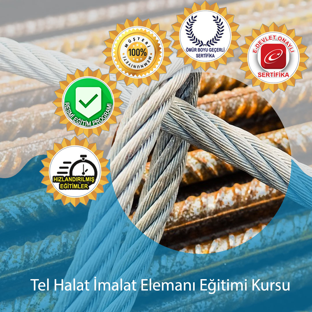 Tel Halat İmalat Elemanı Eğitimi Programı bireyleri bu alanda yeterli hale getirmeyi amaçlamaktadır Tel Halat İmalat Elemanı eğitimi kursumuzun içeriği, Tel Halat İmalat Elemanı eğitimi kursumuzun süresi ve kursumuz sonunda alacağınız Üniversite ve E devlet Onaylı Sertifikanın geçerliliği hakkında temel bilgiyi buradan edinebilirsiniz.